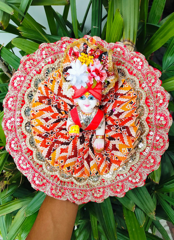 Bandhej lace designer dress for laddu gopal with pagdi and choli