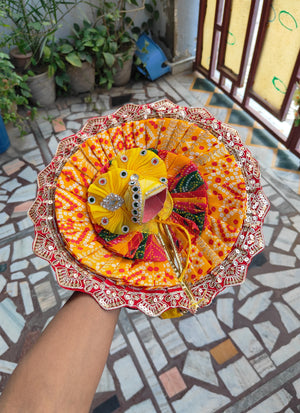 Heavy multi color laddu gopal bhandej dress with pagdi
