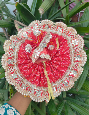 Heavy red color bhandej dress for laddu gopal ji with pagdi